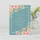 Delicate watercolor blossoms in shades of peach and pink dance across a tranquil teal backdrop. Lush greenery entwines with soft floral clusters, creating an artistic and romantic aesthetic perfect for a memorable celebration.