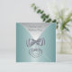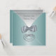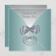 Elegant teal blue and platinum thirteenth birthday party invitation with bow and silver heart decoration on outside and inside.