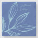 This coaster features an illustrated, abstract close-up line drawing of a marine plant. The colours are shades of blue. There is a custom text area for your family name or home name. Perfect for beachy, coastal or nautical theme decor.