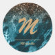 Teal Blue Agate glitter Monogram personalised Classic Round Sticker