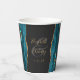 Teal Blue Agate Gold Glitter Script Wedding Paper Cups