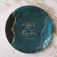Teal Blue Agate Gold Script Wedding Paper Plate