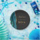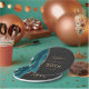 These elegant modern 50th birthday plates feature a teal blue watercolor design trimmed with faux gold glitter on an off-black background. Easily customise the gold-coloured text with the guest of honour's name and birthday.