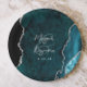 Teal Blue Agate Silver Script Wedding Paper Plate