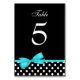 Teal Blue and Black Polka Dots Bow Table Number
