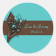 Teal Blue on Brown adorned with flower and leaves in the same colour. If you need to move the text, or change the size, font, or colour, click Customise It. email shutterbug600@yahoo.com There is a matching save the date card available: