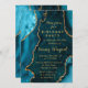Teal Blue and Gold Agate Marble Birthday Party Invitation