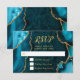 Teal Blue and Gold Agate Marble RSVP Card