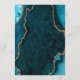 This elegant and glamourous wedding menu features a teal blue agate marble background with faux gold glitter accents. The text combines handwritten script and modern sans serif fonts for a classy and sophisticated look. This will be perfect for autumn fall and winter weddings.