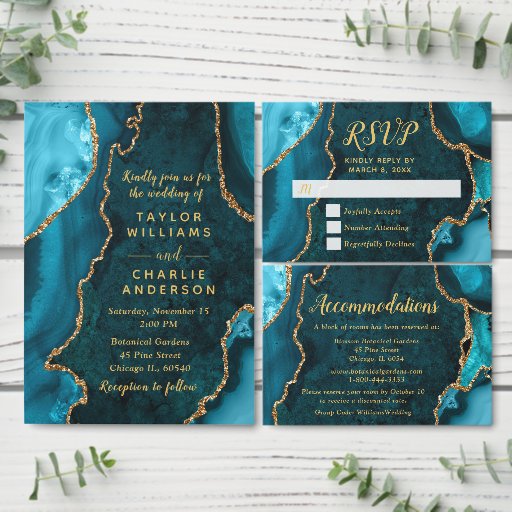 Teal Blue and Gold Agate Marble WeddingDesigned by Kirsty W