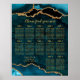 Welcome guests in style with this teal blue and gold agate marble wedding seating chart, designed to make a striking statement at your reception. Rich jewel-toned blues, organic stone-inspired patterns, and luminous gold accents create a refined and dramatic display ideal for fall or winter weddings. The deep ocean palette paired with metallic gold detailing complements elegant, modern, and glamorous celebrations while enhancing your décor. This seating chart is formatted for 12 tables and can be fully customized to accommodate additional tables, guest counts, and layout preferences, ensuring a seamless fit for your wedding day.