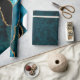 This elegant and glamourous wrapping paper is versatile and can be used for giving gifts or art and craft projects. It is ideal for any occasion such as birthdays, weddings, bridal showers, baby showers, anniversaries or general gifts. It features teal blue marble agate on a distressed teal blue background. The faux gold glitter accents and abstract print creates the perfect blend of chic and stylish.