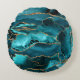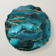 Teal blue and gold glitter agate round pillow. Modern and elegant design.