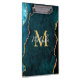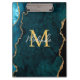 This clipboard features an elegant and glamourous agate marble background with geode gemstone detailing and faux gold glitter accents. The monogram combines handwritten script and modern sans serif fonts for a classy and sophisticated look. This will make the ideal gift as it can be customised with a name and initial. The deep teal blue hues make it perfect for autumn fall and winter.