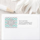 Teal Blue and Grey Modern Chevron Return Address Labels with Monogram. Light Grey quatrefoil.
