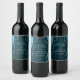 Teal Blue and Silver Agate Marble Wedding Wine Label