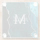 This coaster features an elegant and glamourous agate marble background with geode gemstone detailing and faux silver glitter accents. The monogram combines handwritten script and modern sans serif fonts for a classy and sophisticated look. This will make the ideal gift as it can be customised with a name and initial. The deep teal blue hues make it perfect for autumn fall and winter.