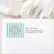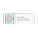Teal Blue and white Modern Stripes Return Address Labels with Monogram. Light Grey quatrefoil.