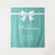 Elegant Teal Blue And White Ribbon Bow Boy or Girl Baby Shower Welcome Tapestry