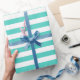 Teal Blue and White Stripe Pattern Wrapping Paper