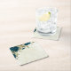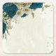 teal blue beige floral botanical wedding square paper coaster