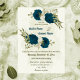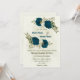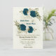 teal blue beige flowers botanical wedding invitation