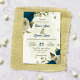Beautiful romantic wedding invitations featuring teal blue and beige flowers and some leaves .