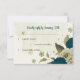 teal blue beige flowers botanical wedding RSVP card