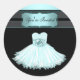 Pretty teal blue party dress birthday party stickers. You can add the text of your choice by simply choosing the "Customise It!" button.