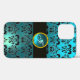 TEAL BLUE BLACK DAMASK GEM STONE MONOGRAM Case-Mate iPhone CASE