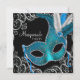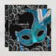 Elegant black and teal blue masquerade party invitations. This beautiful teal blue masquerade party invitation is easily customised for your event by simply adding your event details, font style, font size & colour, and wording. Please note - all of the invitation designs you will find on Zazzle are printed graphics with no actual jewels, bows, raised, embossed, or added parts or pieces.