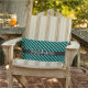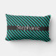 Teal Blue Black White Custom Name Stripes Gift Lumbar Cushion