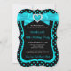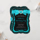 Teal Blue Bow Heart Black Polka Dots Birthday Party. Teen Girls and Womens sophisticated Invitation with a bow with jewel heart. PLEASE NOTE all flat images! They Do NOT have real Bows, Diamonds or Jewels!!