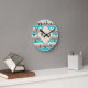 Teal Blue Brown Chevron Modern Monogram Round Clock