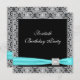 Elegant teal blue silver grey damask lace overlay woman's classy black fortieth birthday party invitation.