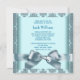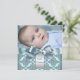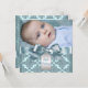 Teal Blue Damask Baby Boy Photo Christening Invitation