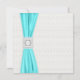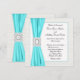Teal blue diamond trim ribbon ivory wedding invitation.