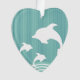 Playful dolphins jumping in the sky against waves and teal blue stripes. Tags: dolphin, blue, teal, dolphins, playful, whimsical, waves, ocean, stripes, striped, fun, nautical, theme, white, personalised, monogram,