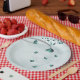 teal blue falling leaves botanical paper plate