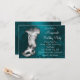 Teal blue masquerade party invitation with beautiful white feather mask on a dark teal blue swirl background. Add your details in the font style and colour, and wording of your choice.