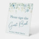 Teal Blue Floral Bridal Shower Guest Book Table Pedestal Sign