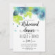 Beautiful bouquet with teal blue ethereal flowers and cursive script handwritten calligraphy floral spring wedding rehearsal dinner invitation. The upper part is covered with a lovely bouquet of blue delicate flowers with green leaves.