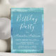 Teal Aqua Blue Watercolor Sparkle Any Age Birthday Party Invitation for an Under the Night Sky Celestial Stars birthday party celebration. This invitation is perfect for a Turquoise Girl's Birthday Party. Please contact the designer for customised matching items.