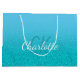 A teal, blue green glitter gradient background. Personalise and add a name and monogram letters. A modern hand lettered style script, white letters. For gift wrapping or party favours for birthday parties, bridal showers or baby showers.