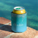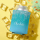 A teal, blue sea, ocean green glitter gradient background. Decorated with faux glitter drips, paint dripping look.  Personalise and add a name and monogram letters. Modern hand lettered style script.