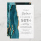Teal Blue Gold Agate 50th Birthday Party Invitation