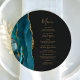 Teal Blue Gold Agate Round Plate Wedding Menu