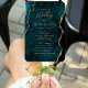 Teal Blue Gold Agate Script Wedding Program Hand Fan