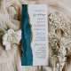 The left-hand edge of this elegant modern wedding program features a teal blue watercolor agate border trimmed with faux gold glitter. The customisable text combines charcoal grey calligraphy script and sans serif fonts on a white background.