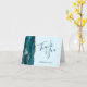 This elegant modern wedding thank you card features a teal blue watercolor agate border trimmed with faux gold glitter. The customisable text combines the words "Thank You" in dark teal handwriting script and the names of the bride and groom in italic font on a pale teal background.
